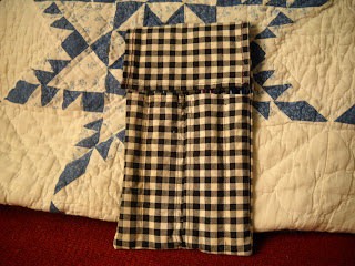 I had these black gingham curtains in my kitchen but recently got new ones. So I cut the bottom half into dish towels (it's a nice, heavy cotton), and was left with the top half where the casing is for the curtain rod.